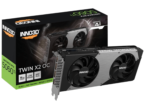 - Grafikkort: Inno3D GeForce RTX 5060 Ti TWIN X2 OC 16 GB GDDR7